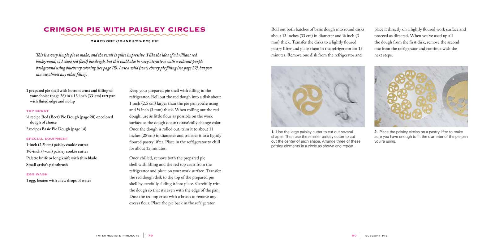 The recipes and techniques presented in this book give any home baker the tools they need to create breathtaking works of pie art. From preparation of the dough to the last moments of baking, all methods are clearly presented using step-by-step photographs. A flat surface, rolling pin, sharp knife, different size and shaped cookie cutters make embellishing an ordinary pie crust easy. The 25 designs, arranged by three levels of difficulty, range from graphic art styles to seasonal-inspired florals.