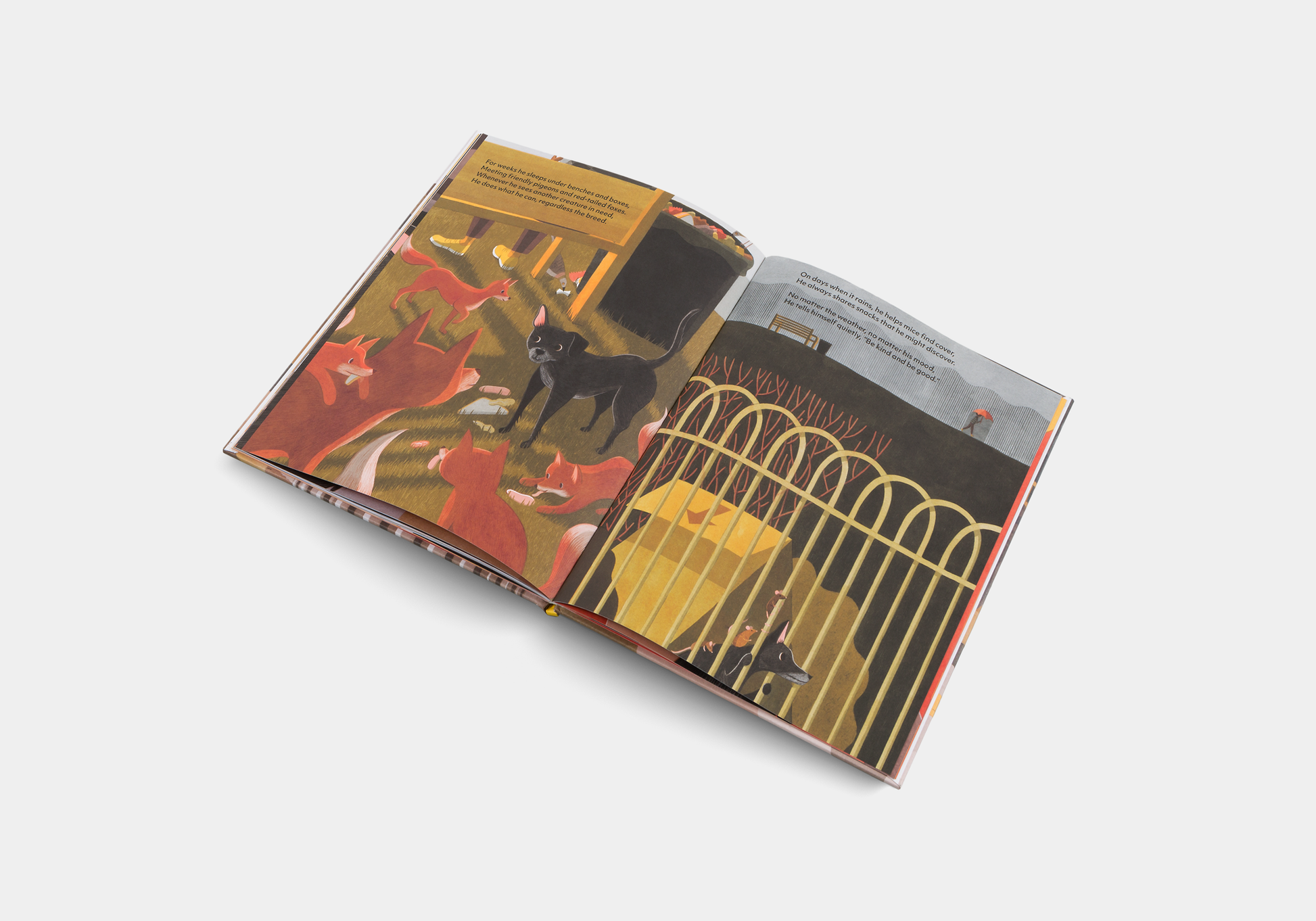 In a down and out city, Garbage Dog huddles in his cardboard home dreaming of sweet pies and meaty sausages. Even in the darkest of times, a kind dog keeps his spirits up and looks after others. The warmth of Garbage Dog’s character in a cruel city reminds us all that kindness and sympathy is something we create.