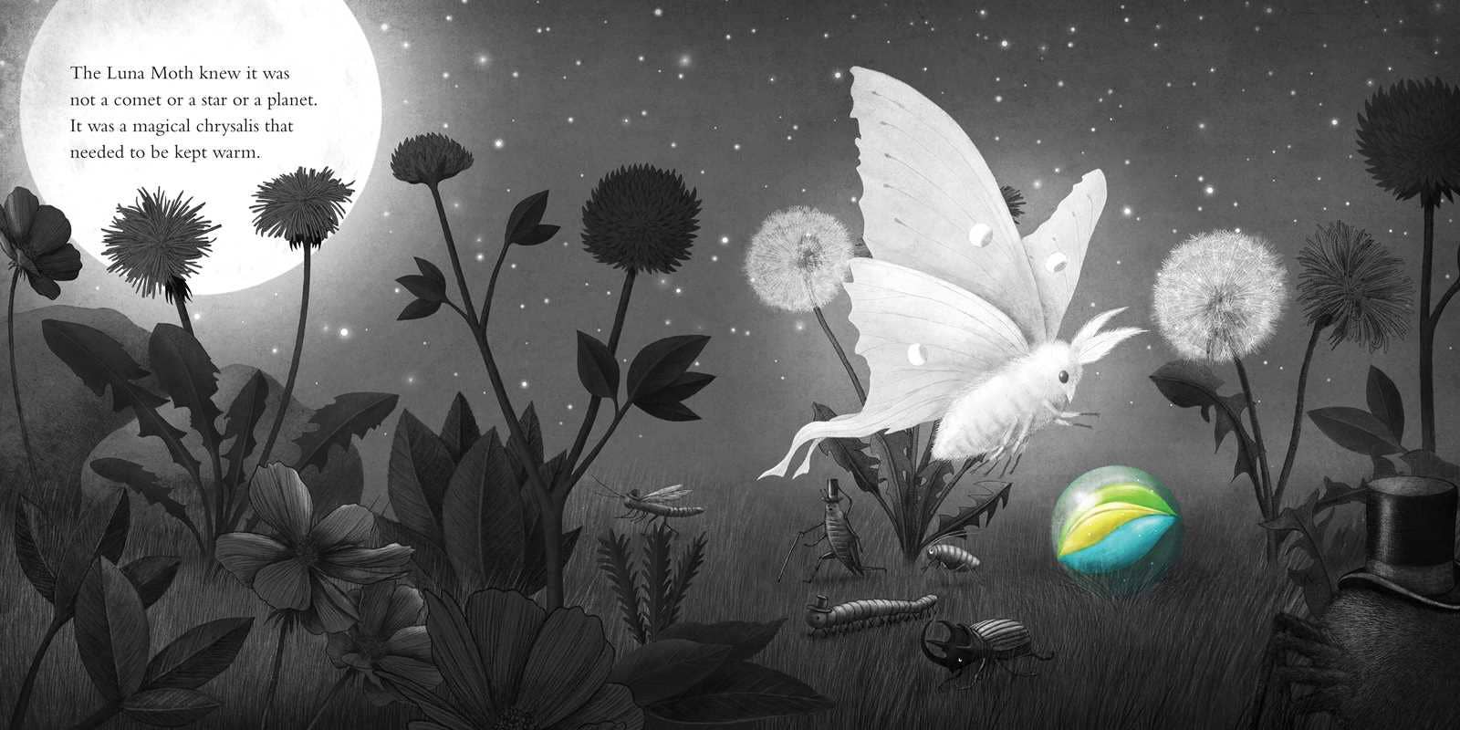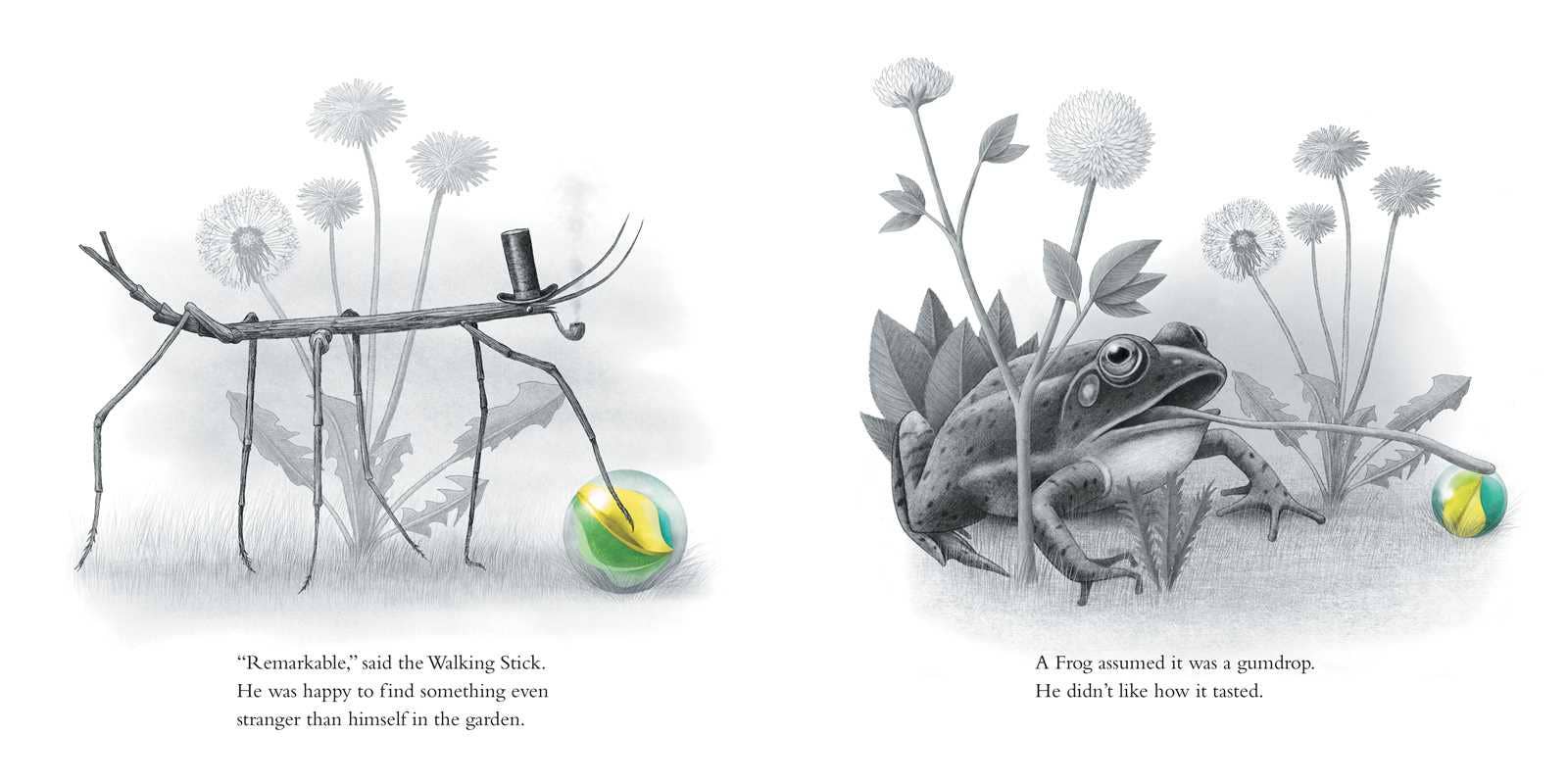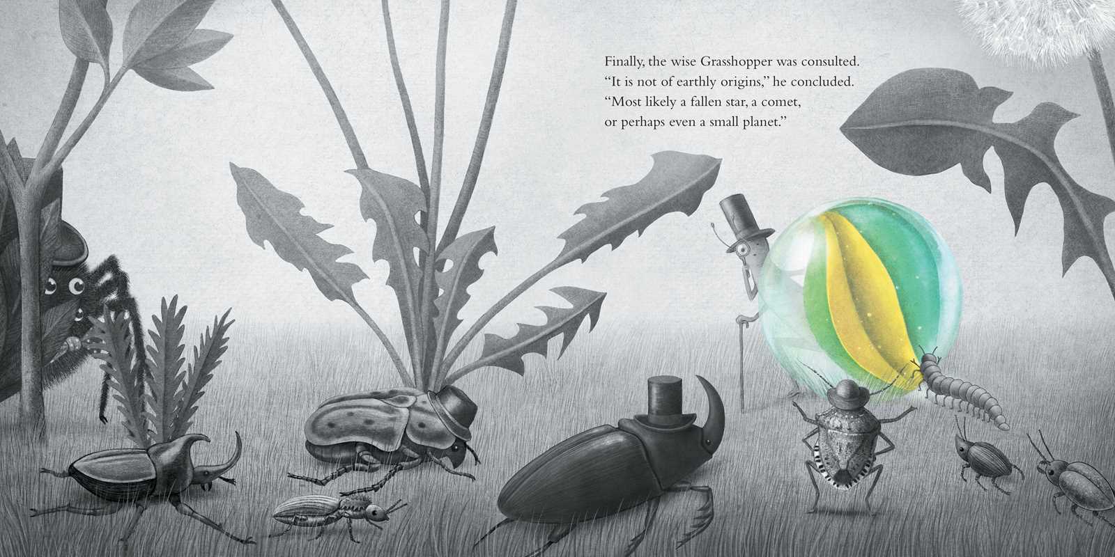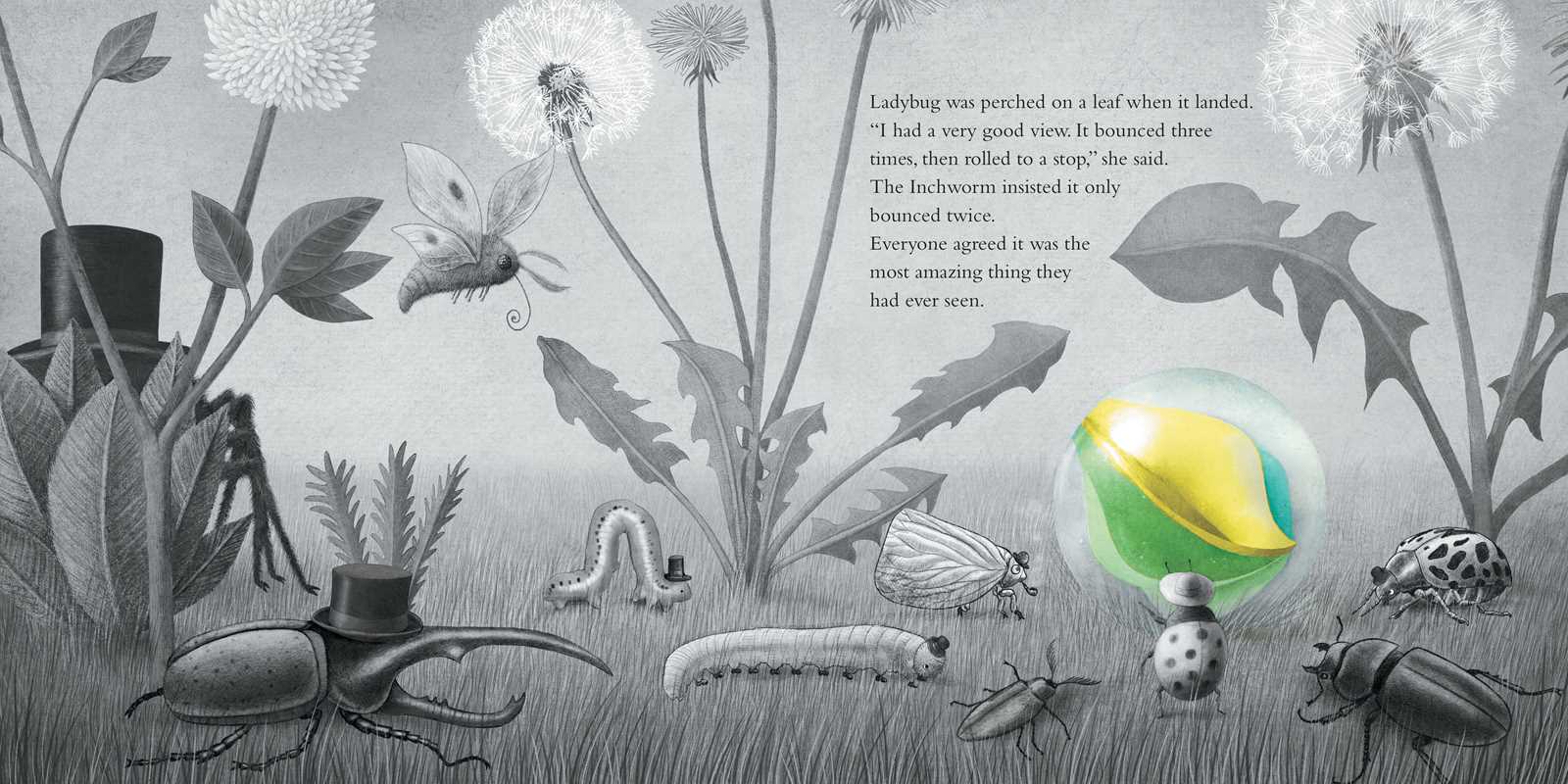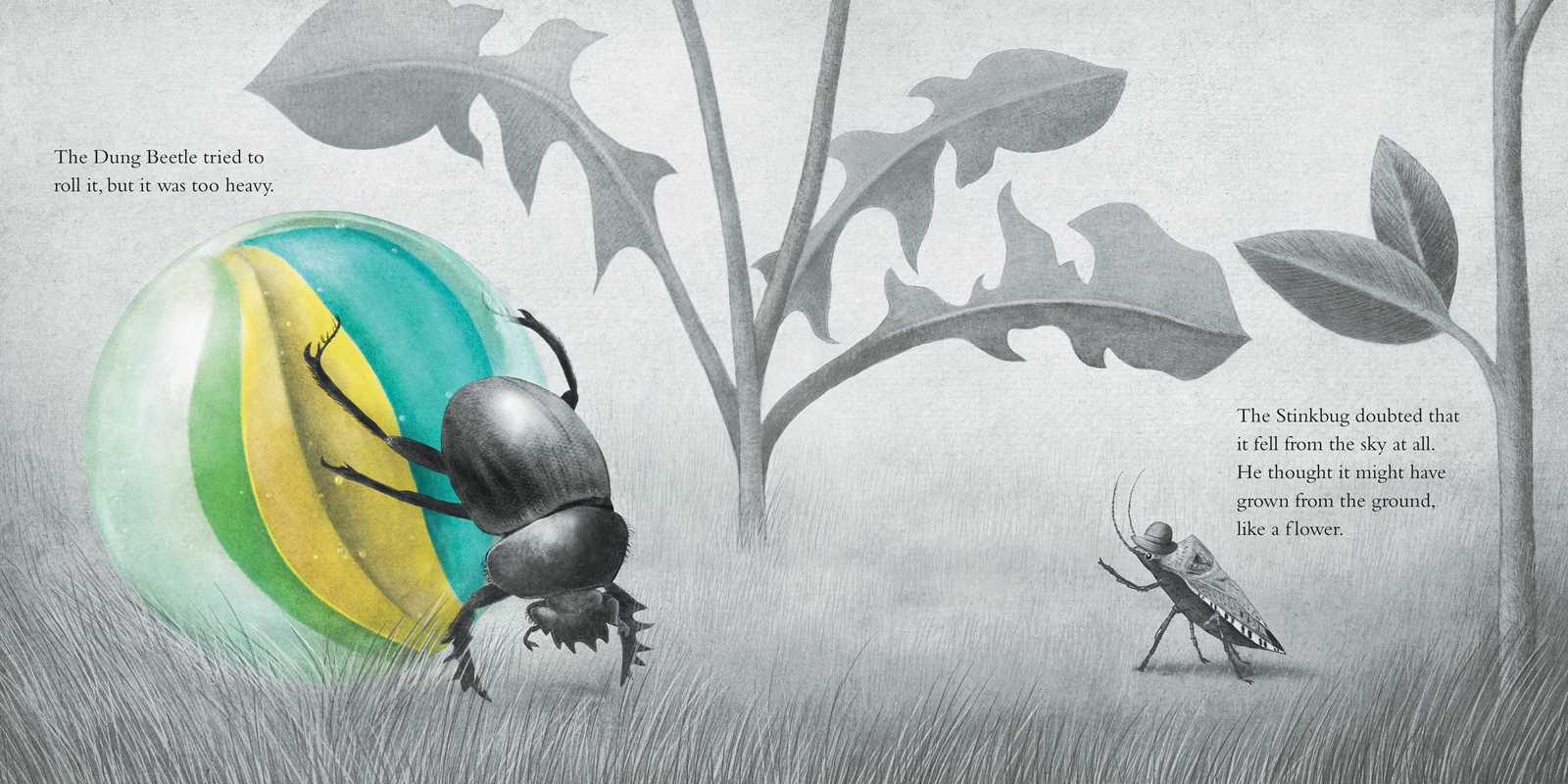 None of the insects know where it came from, or what it is. Some say it’s an egg. Others, a gumdrop. But whatever it is, it fell near Spider’s house, so he’s convinced it belongs to him.