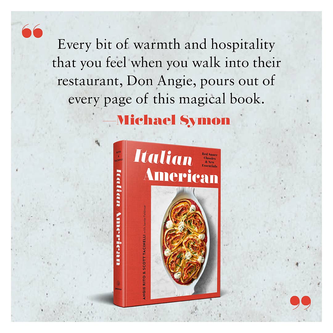 The words “red sauce” alone conjure images of an Italian American table full of antipasti both hot and cold, whisked off to make room for decadent baked pastas topped with molten cheese, all before a procession of chicken parm or pork chops all pizzaiola—and we haven't even gotten to dessert. It’s old-school cooking beloved by many, and imbued with a deep sense of family. In Italian American, Angie Rito and Scott Tacinelli, the chefs of critically acclaimed Don Angie in New York City's West Village, reinvigorate the genre with a modern point of view that proudly straddles the line between Italian and American. They present family classics passed down through generations side by side with creative spins and riffs inspired by influences both old and new. These comforting dishes feel familiar but are far from expected, including their signature pinwheel lasagna, ribs glazed with orange and Campari, shrimp parm meatballs, and a cheesy, bubbling gratin of broccoli rabe and sharp provolone.