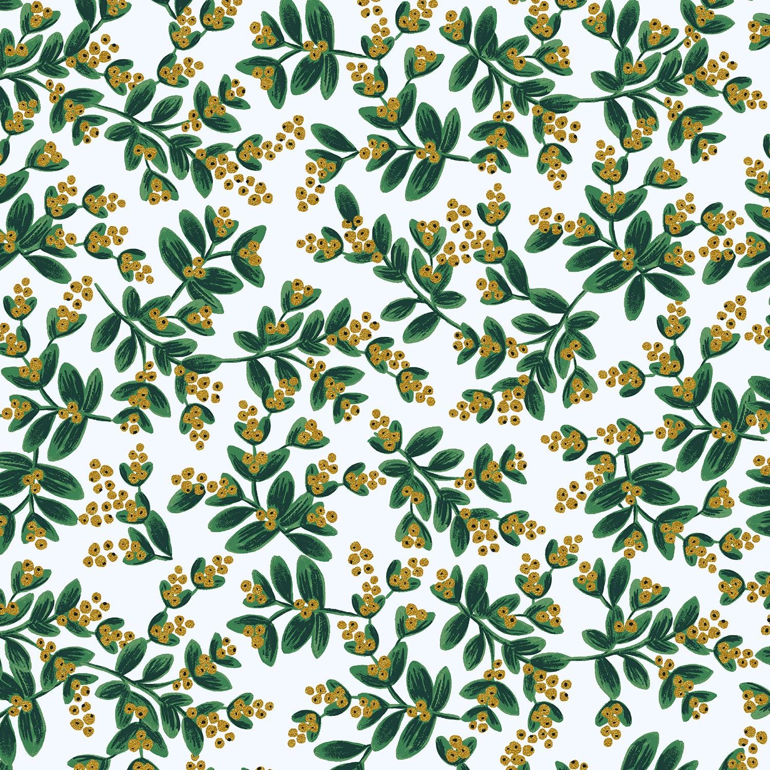Rifle Paper Co. - Holiday Classics - Mistletoe - White Metallic Fabric - Holiday Classics - Cotton+Steel