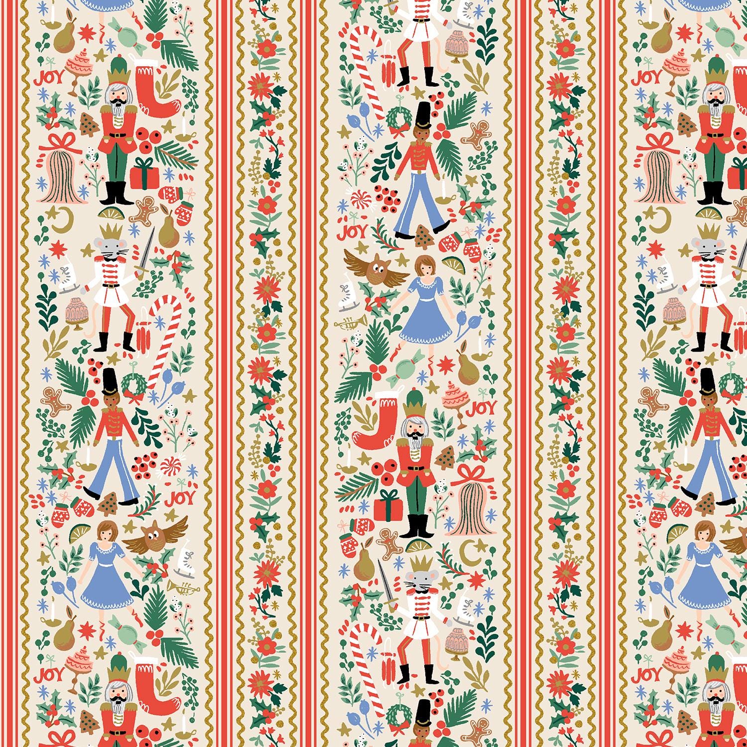 Rifle Paper Co. - Holly Jolly Nutcracker - Cream And Metallic Gold Metallic Fabric - Holiday Classics - Cotton+Steel