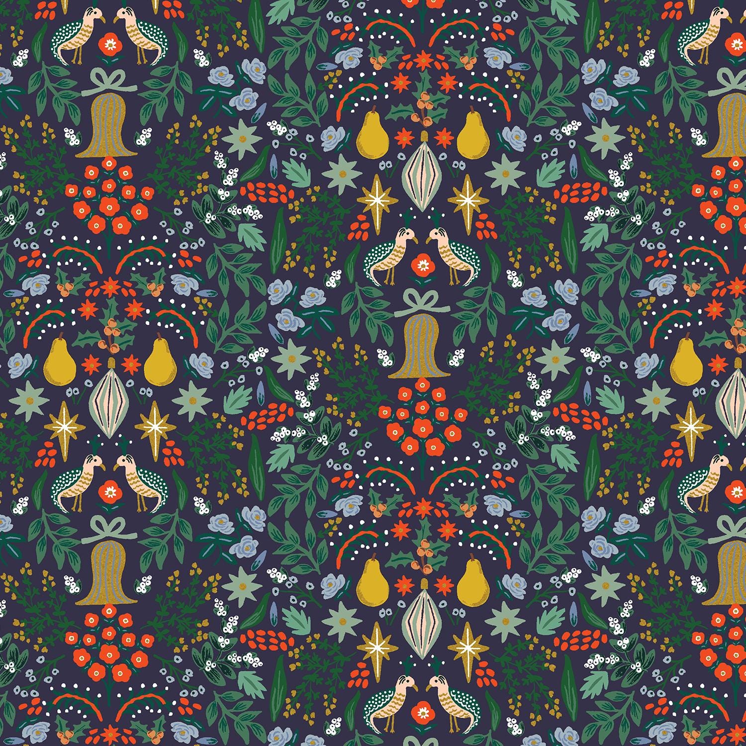 Rifle Paper Co. - Partridge - Navy Metallic Fabric - Holiday Classics - Cotton+Steel